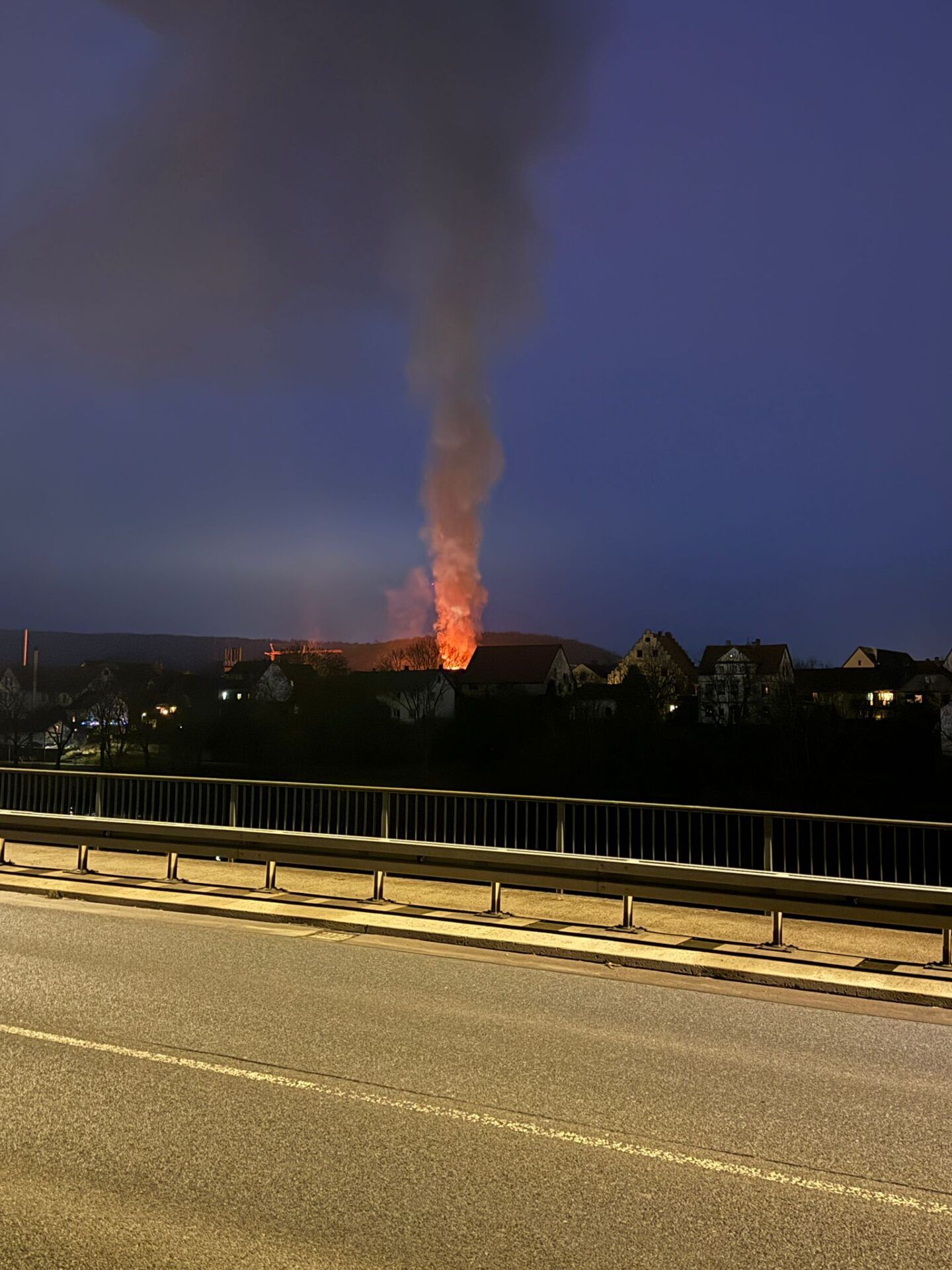 Auf einem Anwesen war eine Scheune in Brand geraten und stand beim Eintreffen der ersten Kräfte bereits im Vollbrand. Das Feuer breitete sich schnell auf eine direkt angrenzende Scheune aus.