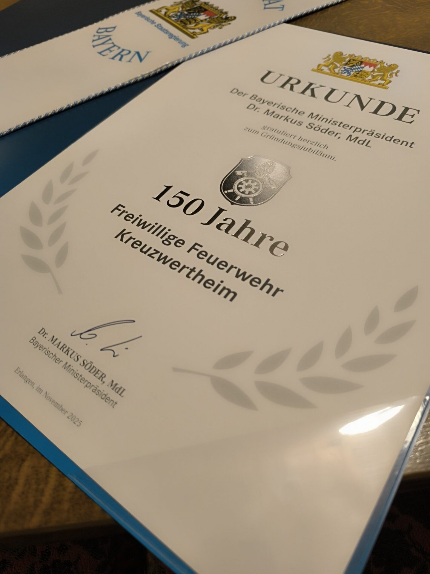 Feierlicher Staatsempfang durch die bayerische Landesregierung Auf Einladung von Ministerpräsident Markus Söder durften unsere beiden Kommandanten am Staatsempfang der Feuerwehren Nordbayern in Erlangen teilnehmen. Eingeladen waren fast 300 Wehren aus Unter-, Mittel- und Oberfranken, sowie aus der Oberpfalz, die dieses Jahr ihr 150jähriges Jubiläum feiern konnten. Nach der Begrüßung durch Innenminister Joachim Herrmann hielt unser […]