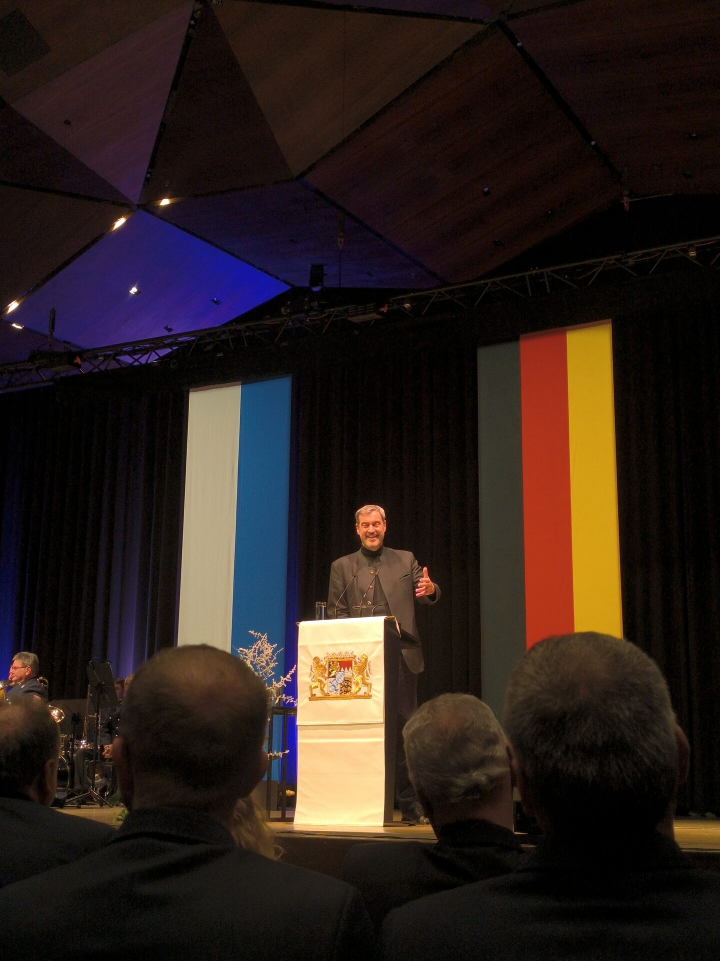 Nach der Begrüßung durch Innenminister Joachim Herrmann hielt unser Ministerpräsident eine sehr kurzweilige und launige Ansprache, in der er den Wehren gratulierte und für ihren Einsatz dankte. Anschließend waren alle für ein paar gemütliche Stunden zum Abendessen eingeladen. Und ja, es gab auch Bratwurst. 😉